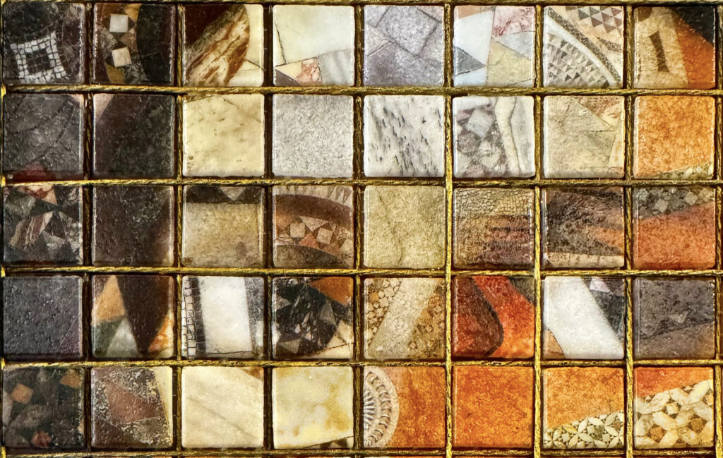 Nel 25º anniversario della sua prima mostra personale Dinamiche (2000, Galleria Junck, Venezia), Morucchio inaugura un nuovo capitolo rivoluzionario del suo progetto Puzzling Classics: Puzzling Tangible Classics. Questa serie segna un passaggio decisivo dalle composizioni digitali bidimensionali ai mosaici tridimensionali. Frammenti fotografici della pavimentazione musiva della Basilica di San Marco—già esplorata nel progetto The Rape of Venice—vengono trasmutati in tessere fisiche di pasta vitrea. Gli spazi vuoti sono riempiti con fili di cotone dorati o con acrilico metallico, legando i frammenti in un equilibrio luminoso. Centinaia di “tessere” fotografiche, un tempo virtuali, rinascono come elementi musivi tangibili, invitando a un coinvolgimento sia visivo sia tattile. Il processo riflette una metamorfosi materiale: dal pavimento marmoreo antico all’immagine digitale, dal frammento virtuale al mosaico fisico. Puzzling Tangible Classics fonde la tradizione storica del mosaico con la sperimentazione digitale, spingendo i confini tra immagine e oggetto. Donando forma durevole a frammenti digitali effimeri, la serie ridefinisce il linguaggio formale del progetto e inaugura una nuova direzione multimediale all’interno della pratica artistica di Morucchio.