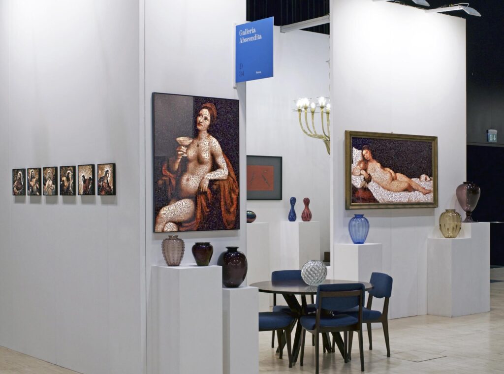 Tra l’autunno 2024 e la primavera 2025, una selezione di opere della serie Puzzling Renaissance di Andrea Morucchio sarà presentata in due importanti eventi: la 4ª Fiera Internazionale di Arte Moderna e Contemporanea Arte in Nuvola a Roma con Galleria Abscondita, e durante la Milano Design Week 2025 all’interno del progetto L’Appartamento a Palazzo Donizetti, curato da >> Artemest. Le opere—reinterpretazioni digitali di nudi rinascimentali—sono composte da migliaia di tessere fotografiche tratte dai pavimenti in marmo policromo della Basilica di San Marco a Venezia. Attraverso questa tecnica, Morucchio fonde l’iconografia classica con un linguaggio visivo frammentato, evocando temi di identità, memoria e trasformazione. A Roma, Galleria Abscondita presenta i fotomosaici di Morucchio in dialogo con una selezione di vetri di Vittorio Zecchin. Entrambi gli artisti traggono ispirazione dal Rinascimento come modello di armonia e bellezza, reinterpretandone i principi in linea con le proprie sensibilità artistiche e con le esigenze estetiche del loro tempo. A Milano, le opere sono integrate nella Entertainment Room progettata dallo studio londinese 1508 London: un ambiente eclettico e immersivo ispirato ai salotti ottocenteschi e agli esclusivi club privati. All’interno di questo contesto ricco di stratificazioni e di narrazione, i Puzzling Classics di Morucchio funzionano sia come punti focali visivi sia come riflessioni concettuali, rafforzando il dialogo tra arte contemporanea, design ed eredità storica.